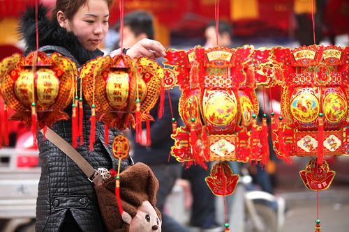 1月30日,人们在河南省开封市大相国寺批发市场选购新年饰品。新华社 发 |