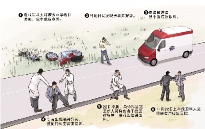 随后,家属询问县中医院工作人员、病人、周围商贩后,获悉从18日开始,谢桐军一直在该院急诊科。到22日早上8点左右,有医院门口“摩的”司机证实,该院3名保安把谢桐军抬出了医院,遗弃到医院附近的一条路旁。