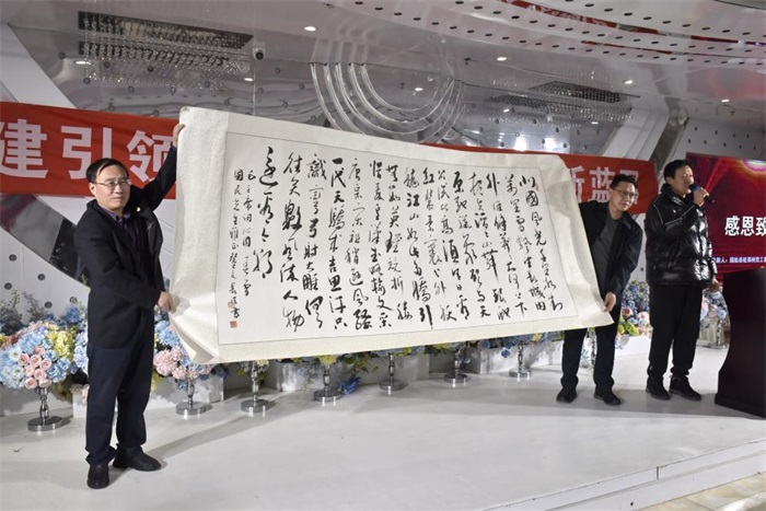 中国书画家联谊会军旅书画家工作委员会首任副主任兼秘书长、中国当代著名毛体书法家高健同志,为优秀党支部书记捐赠毛泽东诗词书法作品。