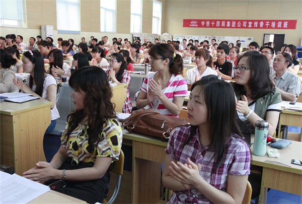 作者李佩山给中铁十四局集团宣传骨干讲蒙标成事迹采写发表前前后后时的情景。 杨德政 摄