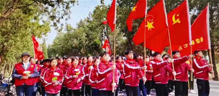 多年来,学校持续开展“歌咏比赛”“文艺汇演”“红色研学”等主题活动。2023年5月,300余名师生徒步往返20多公里,赴滑县革命老区董东村,参观抗日女英雄李秀真故居。孩子们用脚步丈量历史的沉重,用心感受先烈的英勇,深刻体会到今日幸福生活的来之不易。