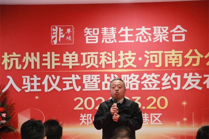 2026年3月20日上午10时,郑州航空港区凌风软件园1号楼7层内高朋满座,气氛热烈。杭州非单项科技有限公司河南分公司入驻仪式暨战略签约发布会在此隆重举行。这不仅是一场简单的开业庆典,更是一次面向未来的生态宣言,标志着非单项科技以郑州为核心,深度赋能中原产业数字化转型的宏伟蓝图正式展开。活动由非单项科技河南分公司总裁张斌先生主持。