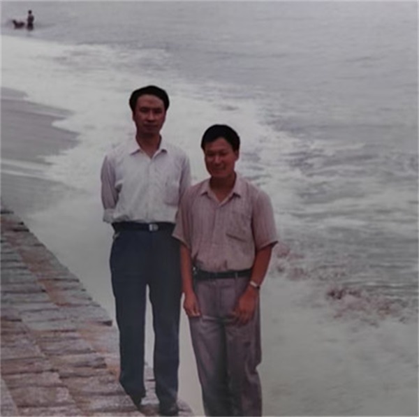 当年李佩山(左)和杜晓言在日照海边合影。张阳灿 摄