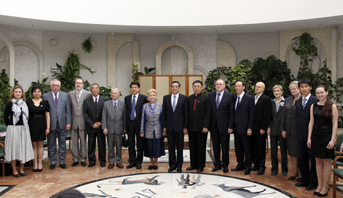 4月26日,刚刚抵达俄罗斯访问的中国国务院副总理李克强在下榻的饭店会见来自中俄两国学术、教育、文化、科技、实业等领域的友好人士代表,与他们亲切交流。新华社记者丁林摄