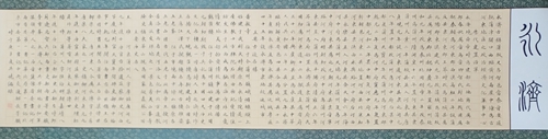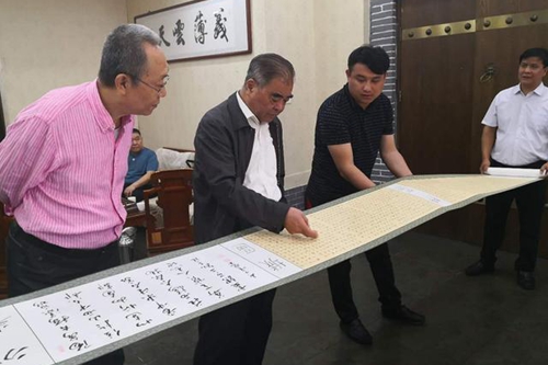 提及创作《中国县域历史长卷》有多难时,吴晓笑谈说,“路漫漫其修远兮”,思想的形成有时只是一瞬间的事,而要完成这部历史巨著,面对的是漫漫征途。仅《山西卷》,吴晓就用了近两年的时间,虽说万事开头难,但其中的艰辛别人是体会不到的。去年,他曾因长期劳累,腰肌劳损40余天无法下床。但他坦言地说,“选择了就要坚持到底。现在长卷考验的不是我的意志,而是我的身体。我愿将后半生全部精力奉献给《中国县域历史长卷》。”书法和长卷俨然已经成为其生命中不可分割的重要部分。