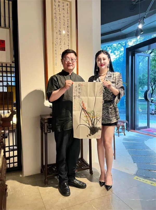 苏州画院沈威峰院长以作品“兰有仙气”赠组委会主办方薛冰清会长,向大赛祝福致意